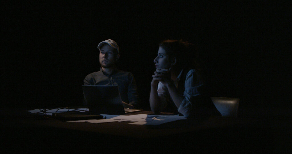 The Expanded Cinema class has produced a collective film as a reflection on images in a world in transition. In We Are Making Good Progress, three connected scenes were realized in the HGB video studio. They show people viewing, editing, and reflecting on images and sounds. The images being negotiated are not shown. Instead, the film focuses on the contexts and effects of images within the artistic process, as well as on affects and image politics in a time of digital image transformation—for example through artificial intelligence, (self-)censorship, and identity. The images seem to disappear more and more, until eventually even language itself is called into question. From the initial idea to the script, direction, and acting, all tasks were distributed within the class.